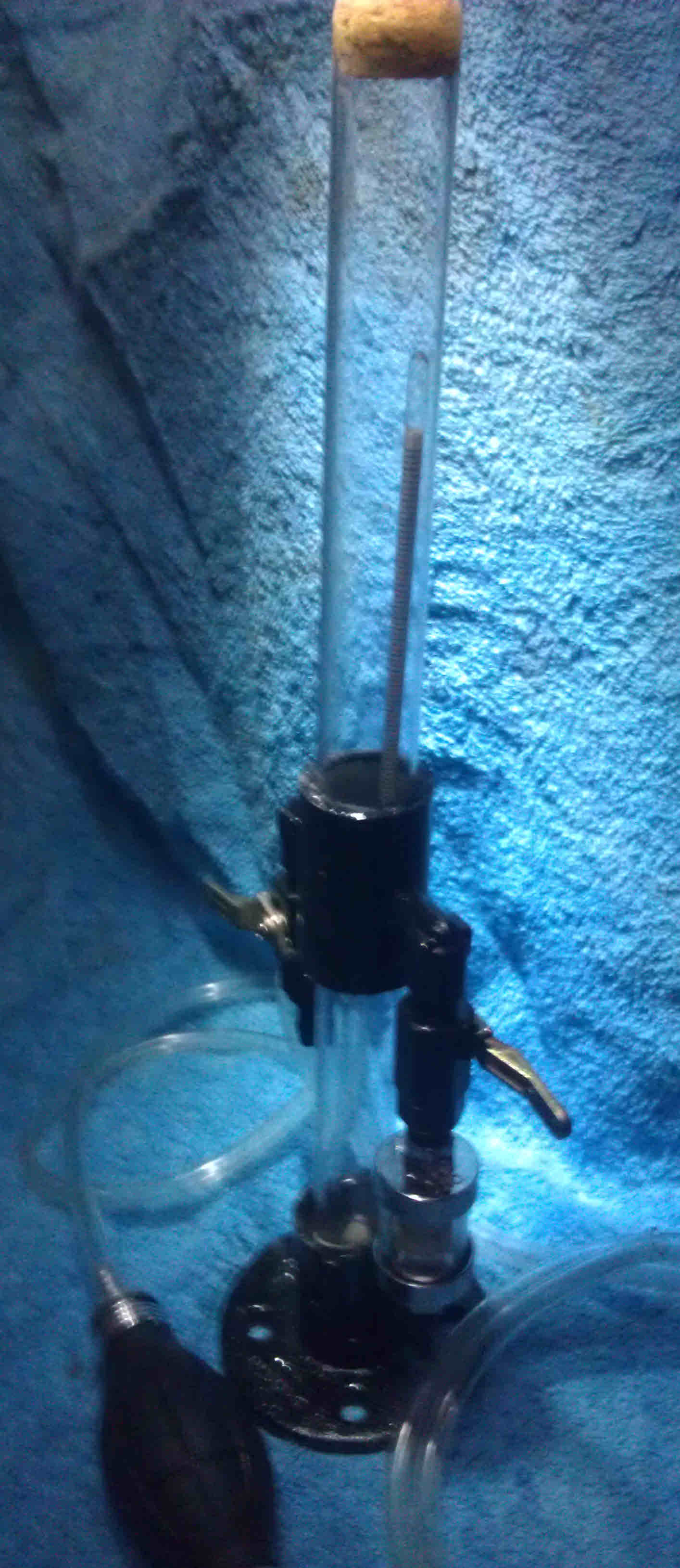To use this item, you open both valves, and turn the unit perpendicular to the ground - that is horizontal - and insert the suction tube in the fuel (or tank) and pump as necessary to fill the device, then close both valves and then tilt it back up vertical. The hydrometer will float in the fuel. If you pumped in too much fuel and the top of the hydrometer is contacting the cork bumper, open the drain side and let some fuel out until the hydrometer is free floating both upper and lower in the fuel.